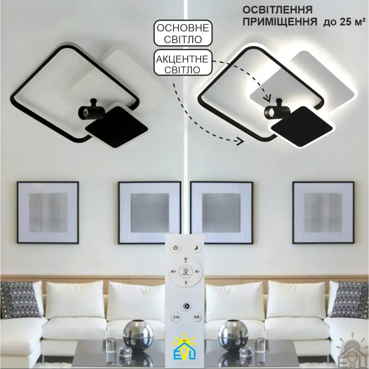 Керована світлодіодна люстра ECLIPSE 3S LR 95 Вт 515×480×130 мм Чорно-біла 10442 ESLLSE