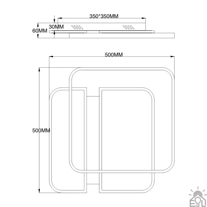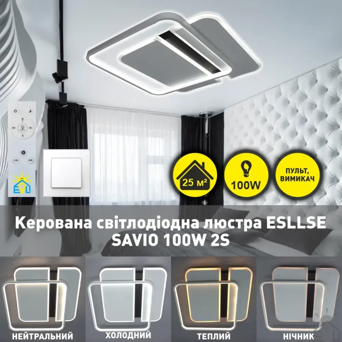 Керована світлодіодна люстра SAVIO 100W 2S-500×500×60-WHITE/BLACK-220-IP20 10438 ESLLSE