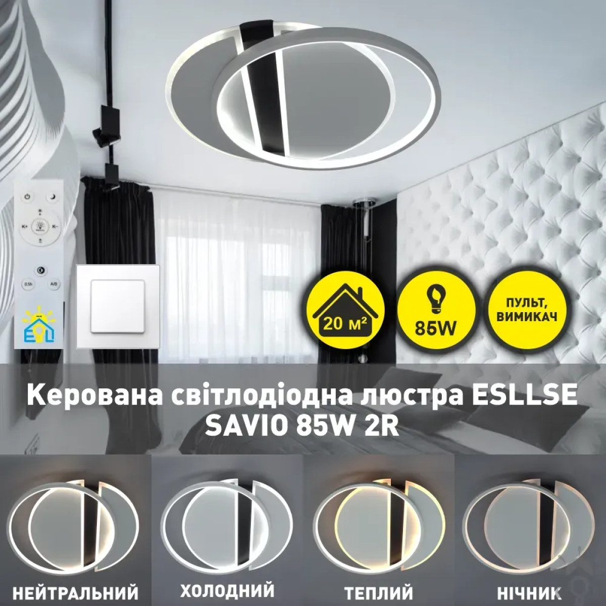 Керована світлодіодна люстра SAVIO 85W 2R-495×420×60-WHITE/BLACK-220-IP20 10437 ESLLSE