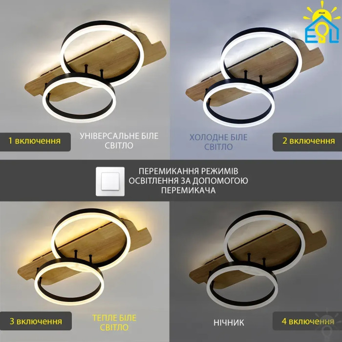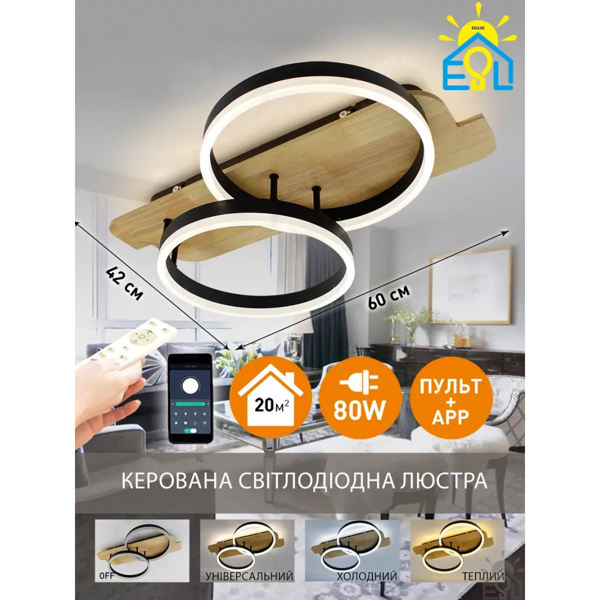 Керована світлодіодна люстра WOODY 80W-2R-APP-600x420x135-BLACK/WOOD-220-IP20 10220 ESLLSE