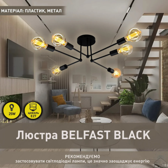 Люстра BELFAST R 740x190 мм на 6 ламп E27 10466 ESLLSE