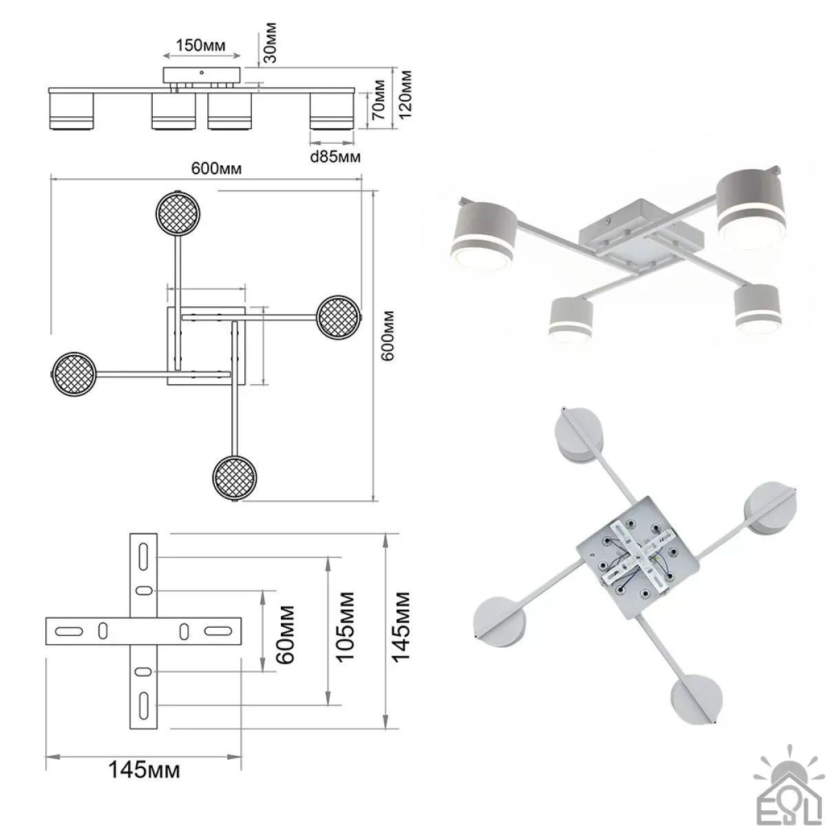 Люстра GELA 4R 600x600x120 мм Біла на 4 лампи GX53 10518 ESLLSE