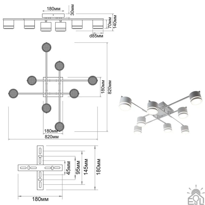 Люстра GELA 8R 820x820x140 мм Біла на 8 ламп GX53 10522 ESLLSE