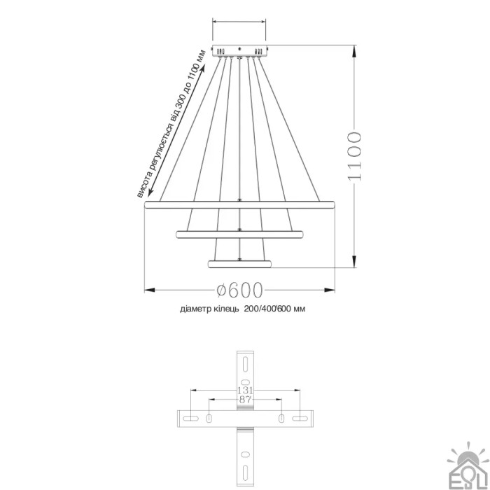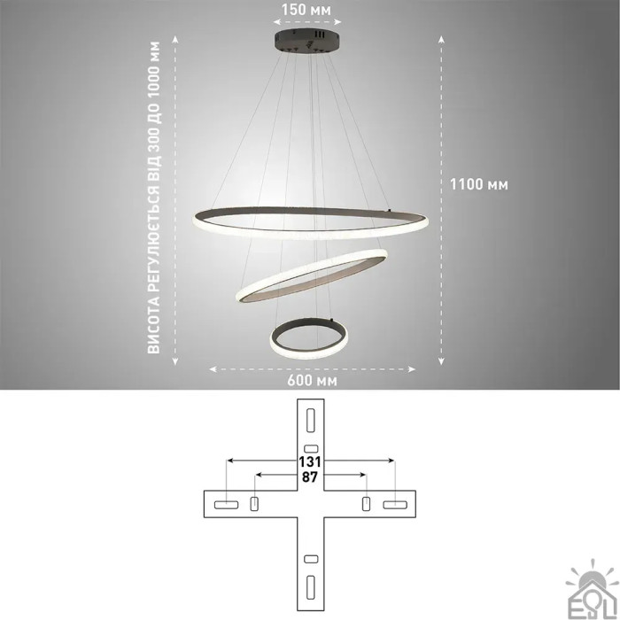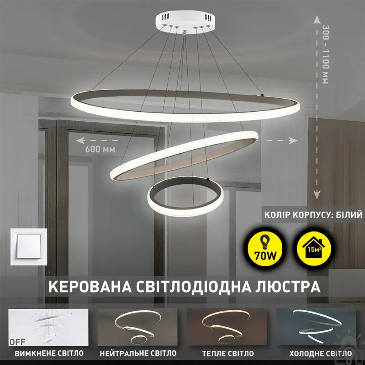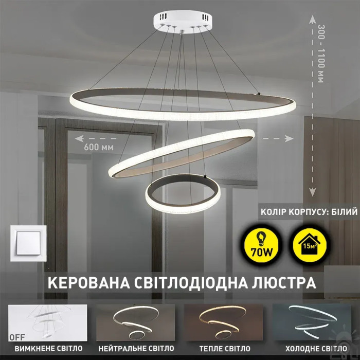 Люстра керована світлодіодна підвісна AKRILIKA 3R 70 Вт 600x1100 мм Біла Керується вимикачем (без пульта) 10431 ESLLSE