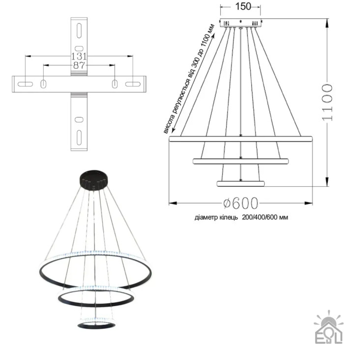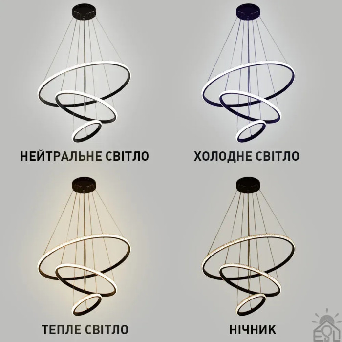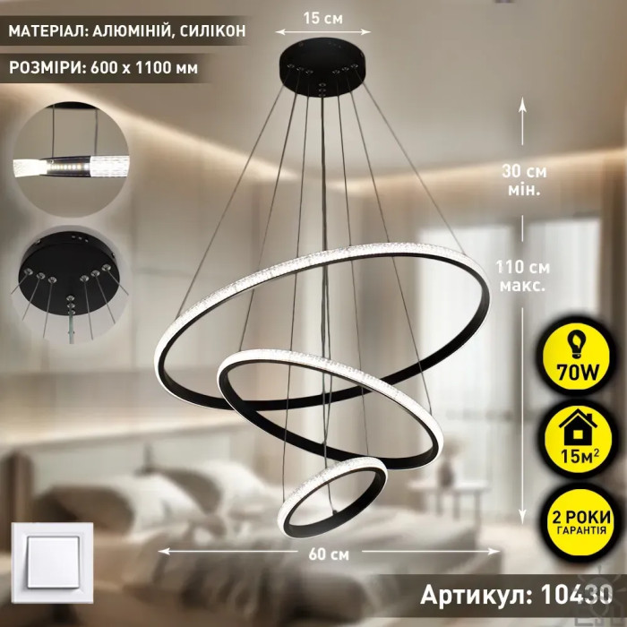 Люстра керована світлодіодна підвісна AKRILIKA 3R 70 Вт 600x1100 мм Чорна Керується вимикачем (без пульта) 10430 ESLLSE