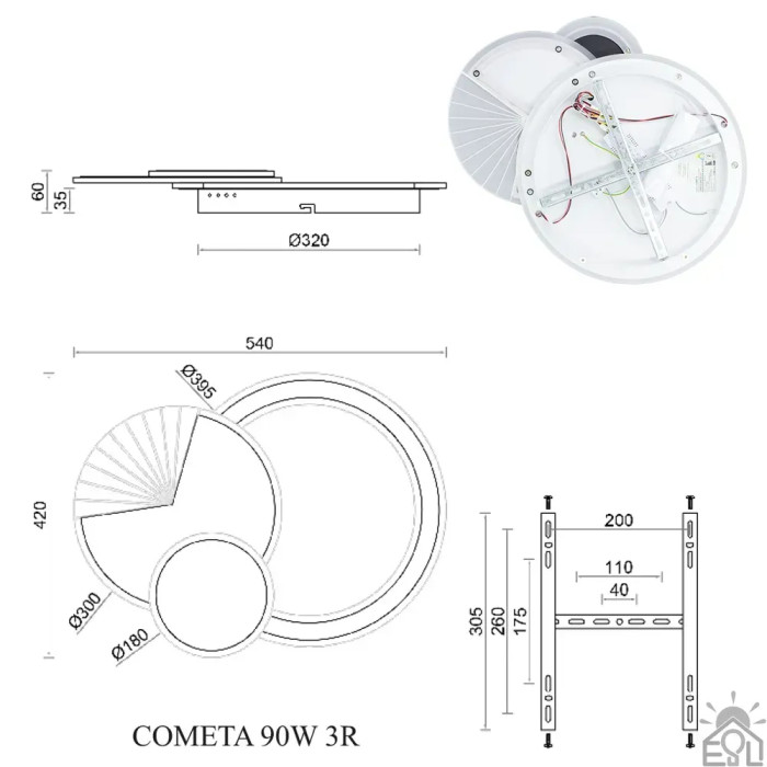 Смарт люстра керована світлодіодна COMETA 3R 90 Вт 540x420x60 мм Бiла 10210 ESLLSE