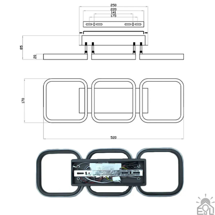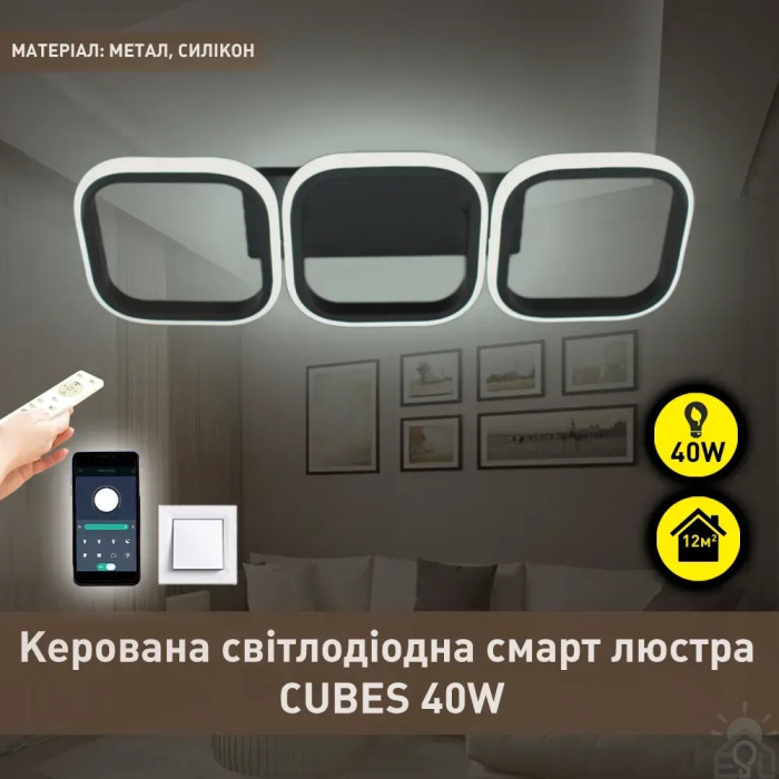 Смарт люстра керована світлодіодна CUBES 40 Вт 520x170x85 мм Чорна 10497 ESLLSE