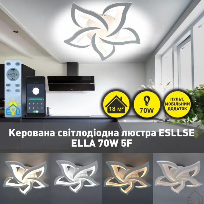 Смарт люстра керована світлодіодна ELLA 5F 70 Вт 640x65 мм 10018 ESLLSE