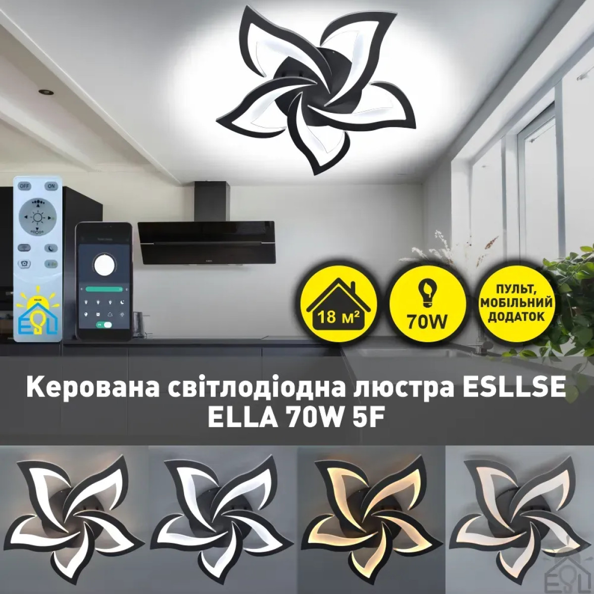 Смарт люстра керована світлодіодна ELLA 5F 70 Вт 640x65 мм 10412 ESLLSE