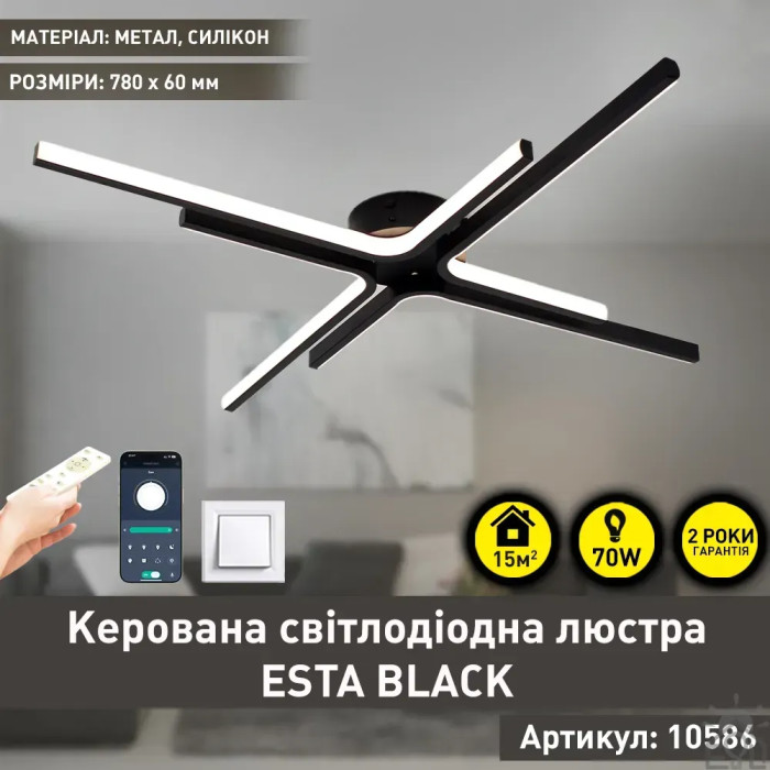 Смарт люстра керована світлодіодна ESTA 70 Вт 4L 770x60 мм 10586 ESLLSE