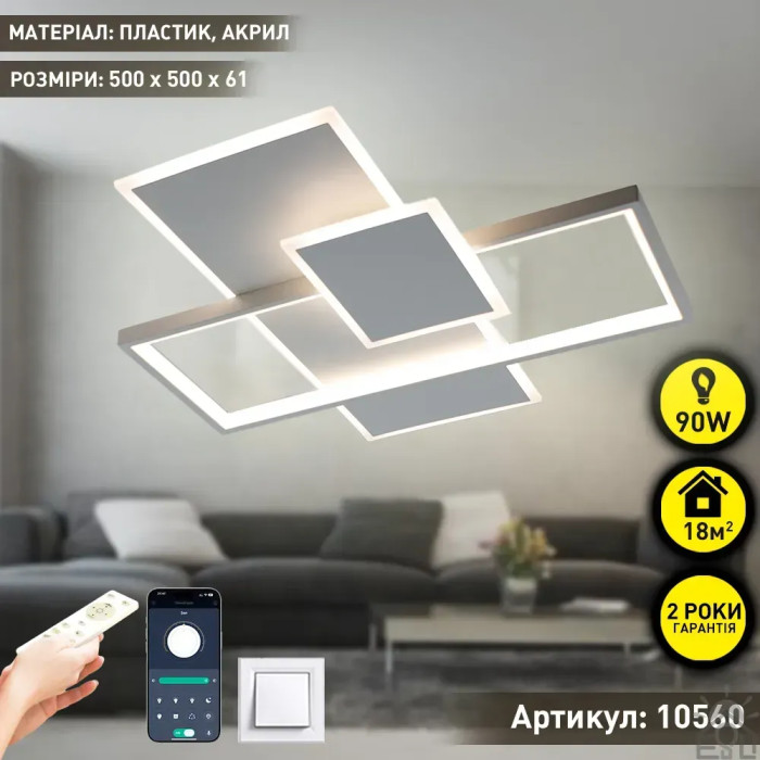 Смарт люстра керована світлодіодна LAMPARAS 3L 90 Вт 500x500x61 мм Біла 10560 ESLLSE