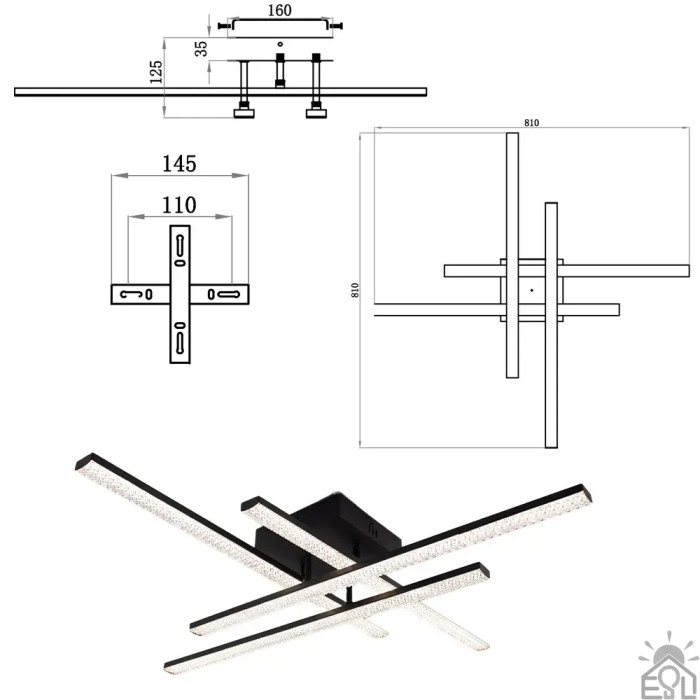 Смарт люстра керована світлодіодна LINE 4L 60 Вт 810x810x125 мм Чорна 10548 ESLLSE