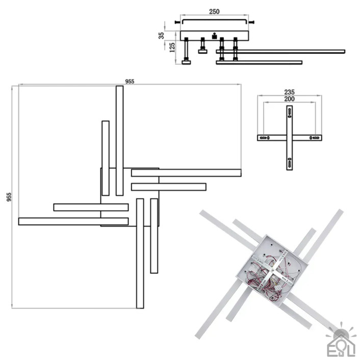 Смарт люстра керована світлодіодна LINE 8L 76 Вт 955x955x125 мм Біла 10551 ESLLSE