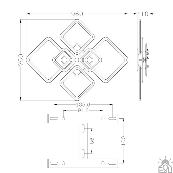 Смарт люстра керована світлодіодна OVAL ICE RGB 7S 120 Вт SMART 960x750x110 мм Чорна 10481 ESLLSE