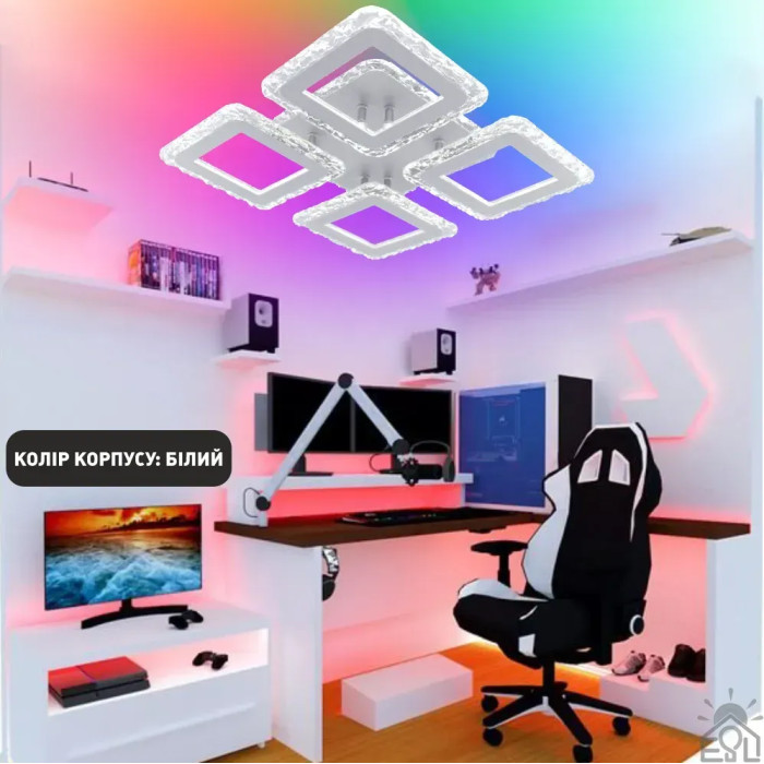 Смарт люстра керована світлодіодна ROOM ICE RGB 5S 70 Вт SMART 385×385×75 мм Біла 10415 ESLLSE