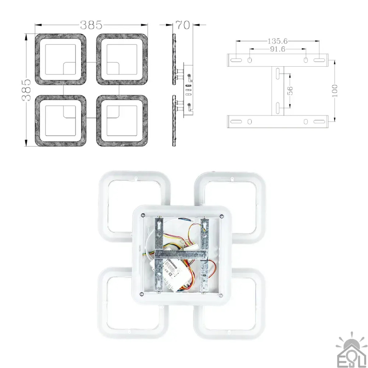 Смарт люстра керована світлодіодна ROOM RGB 5S 70 Вт SMART 385×385×75 мм Біла 10472 ESLLSE