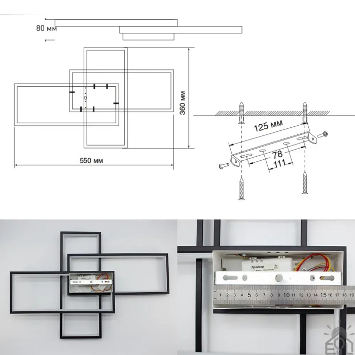 Смарт люстра керована світлодіодна SVEN 3S 85 Вт 690x470x80 мм Чорно-біла 10552 ESLLSE