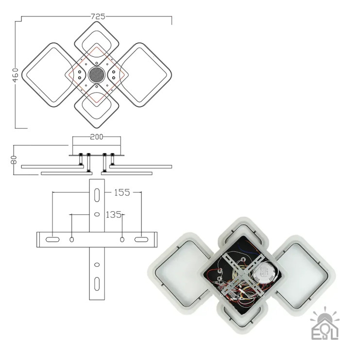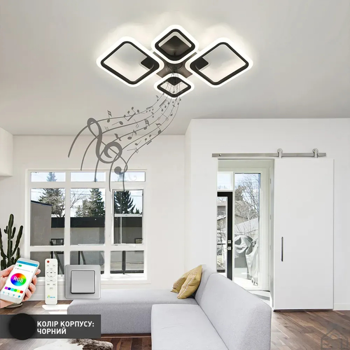 Смарт люстра з колонкою керована світлодіодна OVAL RGB MUSIC 5S 85 Вт 725x460x80 мм 10590 ESLLSE