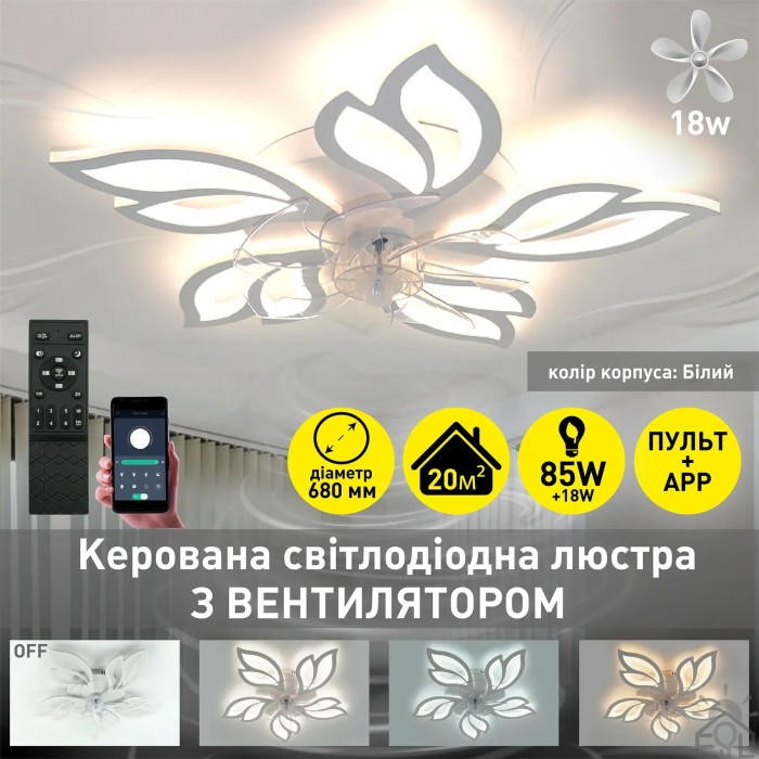 Смарт люстра з вентилятором керована світлодіодна FAN ASTRA 85 Вт + 18 Вт 680x120 мм 10419 ESLLSE