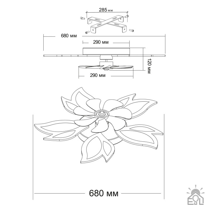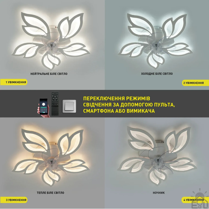 Смарт люстра з вентилятором керована світлодіодна FAN OVAL 70 Вт + 18 Вт 760x560x120 мм 10588 ESLLSE