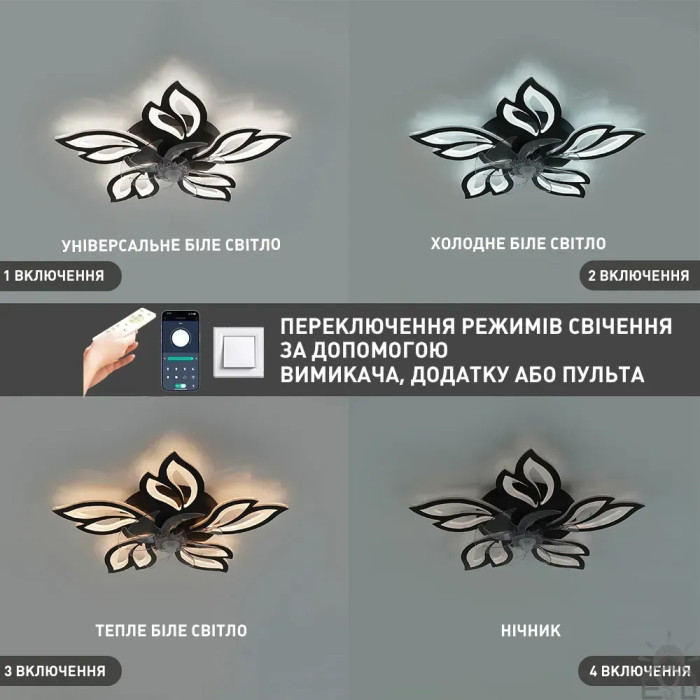 Смарт люстра з вентилятором керована світлодіодна FAN OVAL 70 Вт + 18 Вт 760x560x120 мм 10588 ESLLSE