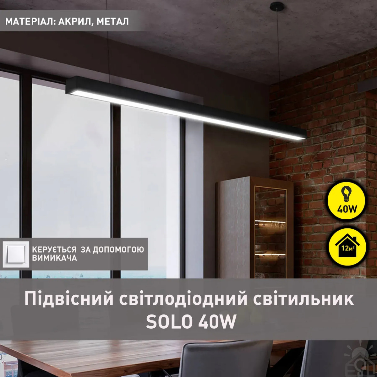 Світильник підвісний лінійний світлодіодний SOLO 40 Вт 1185x50x75 мм Чорний Керується вимикачем (без пульта) 10459 ESLLSE