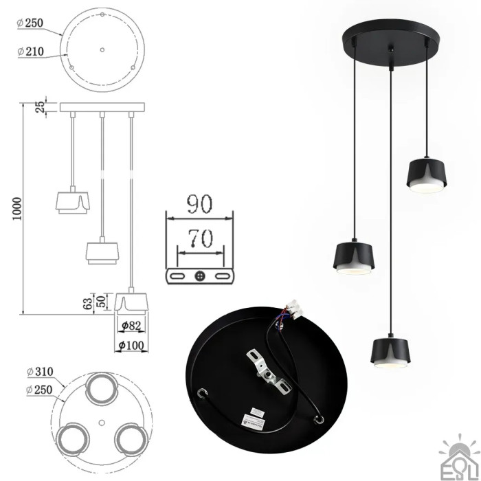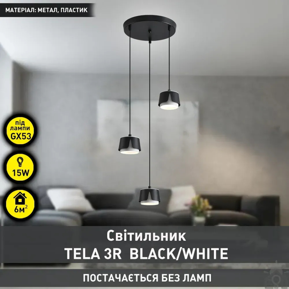 Світильник підвісний TELA 3R 100x1000 мм Чорно-білий на 3 лампи GX53 10538 ESLLSE