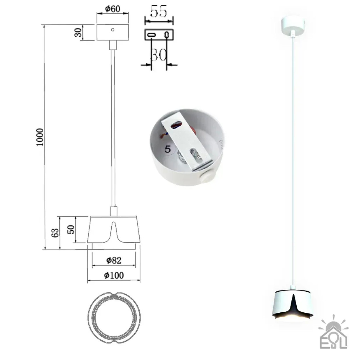 Світильник підвісний TELA R 100x1000 мм Біло-чорний для лампи GX53 10527 ESLLSE