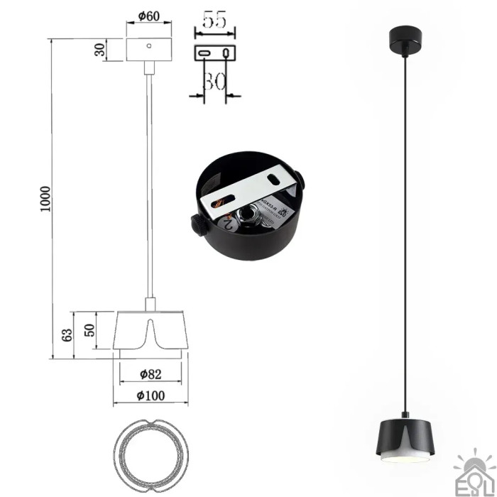 Світильник підвісний TELA R 100x1000 мм Чорно-білий для лампи GX53 10526 ESLLSE