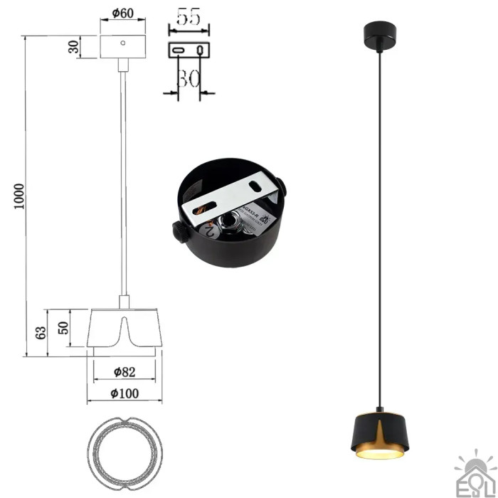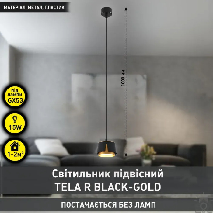 Світильник підвісний TELA R 100x1000 мм Чорно-золотий для лампи GX53 10525 ESLLSE