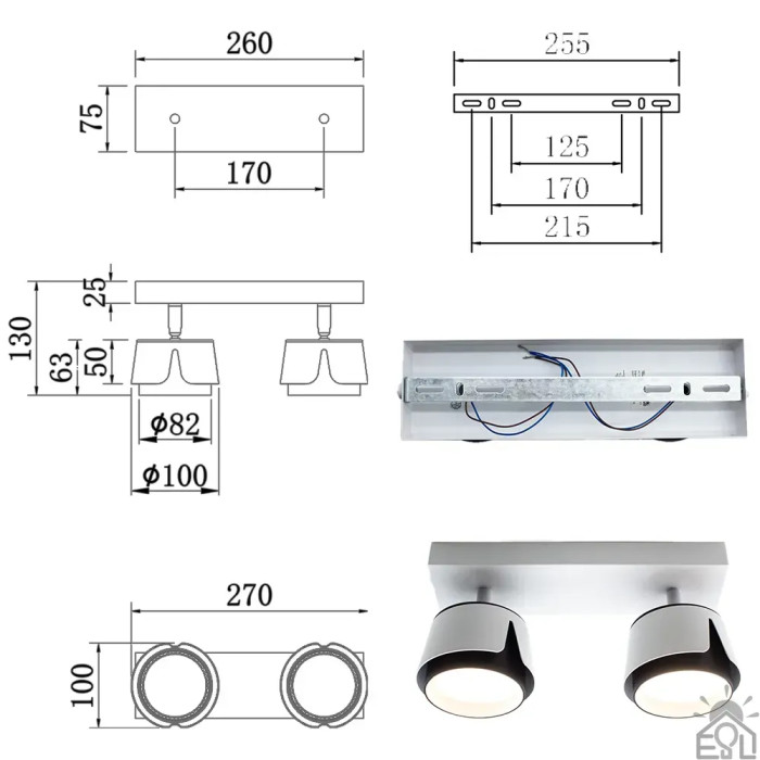 Світильник TELA 2R DL 270x100x135 мм Біло-чорний для лампи GX53 10533 ESLLSE