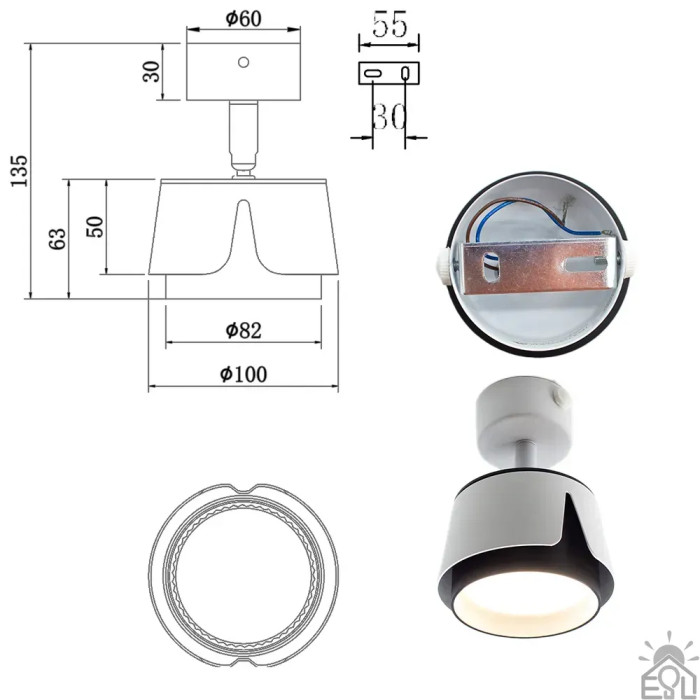 Світильник TELA R DL 100x135 мм Біло-чорний для лампи GX53 10530 ESLLSE