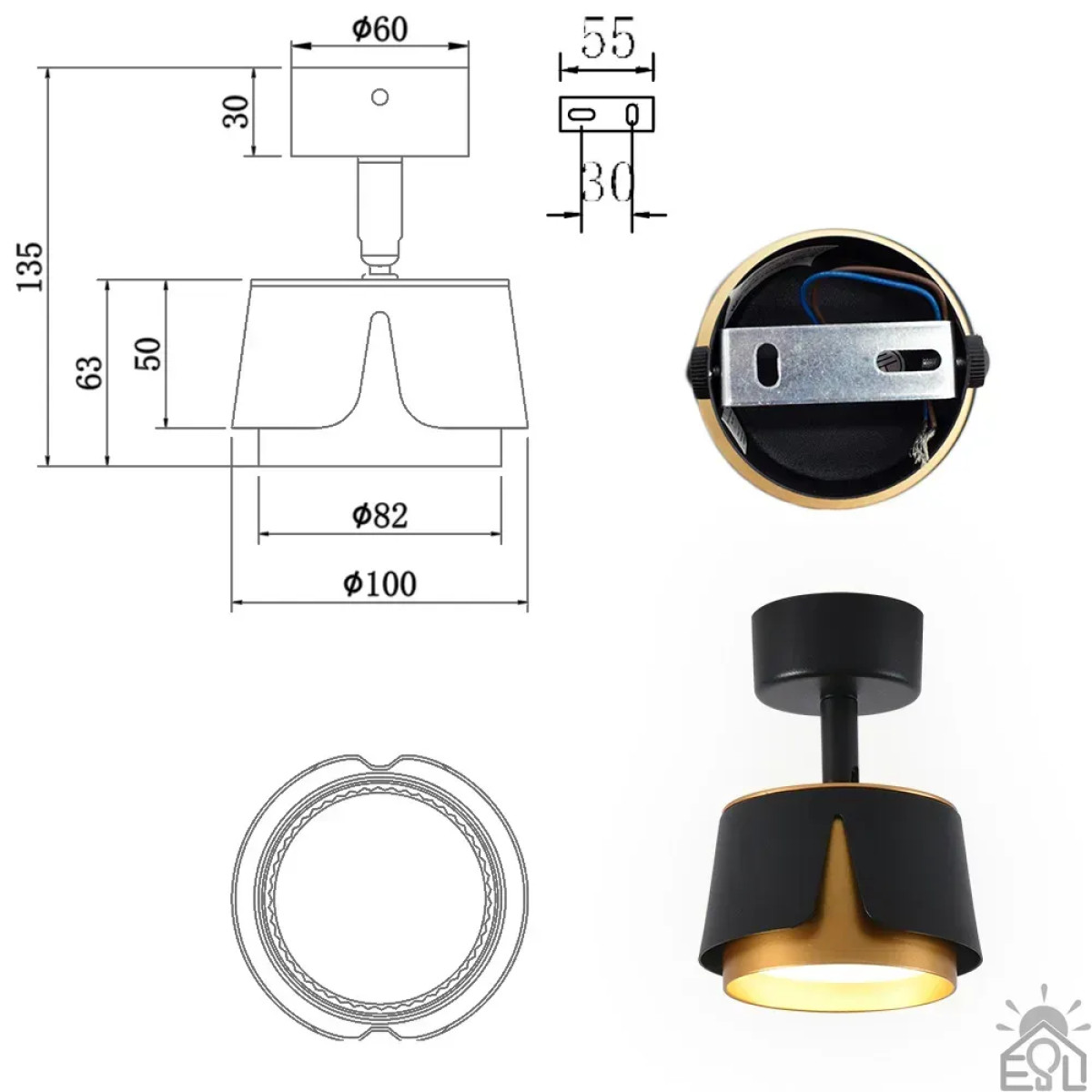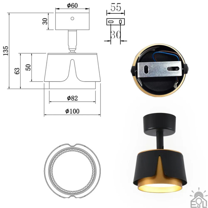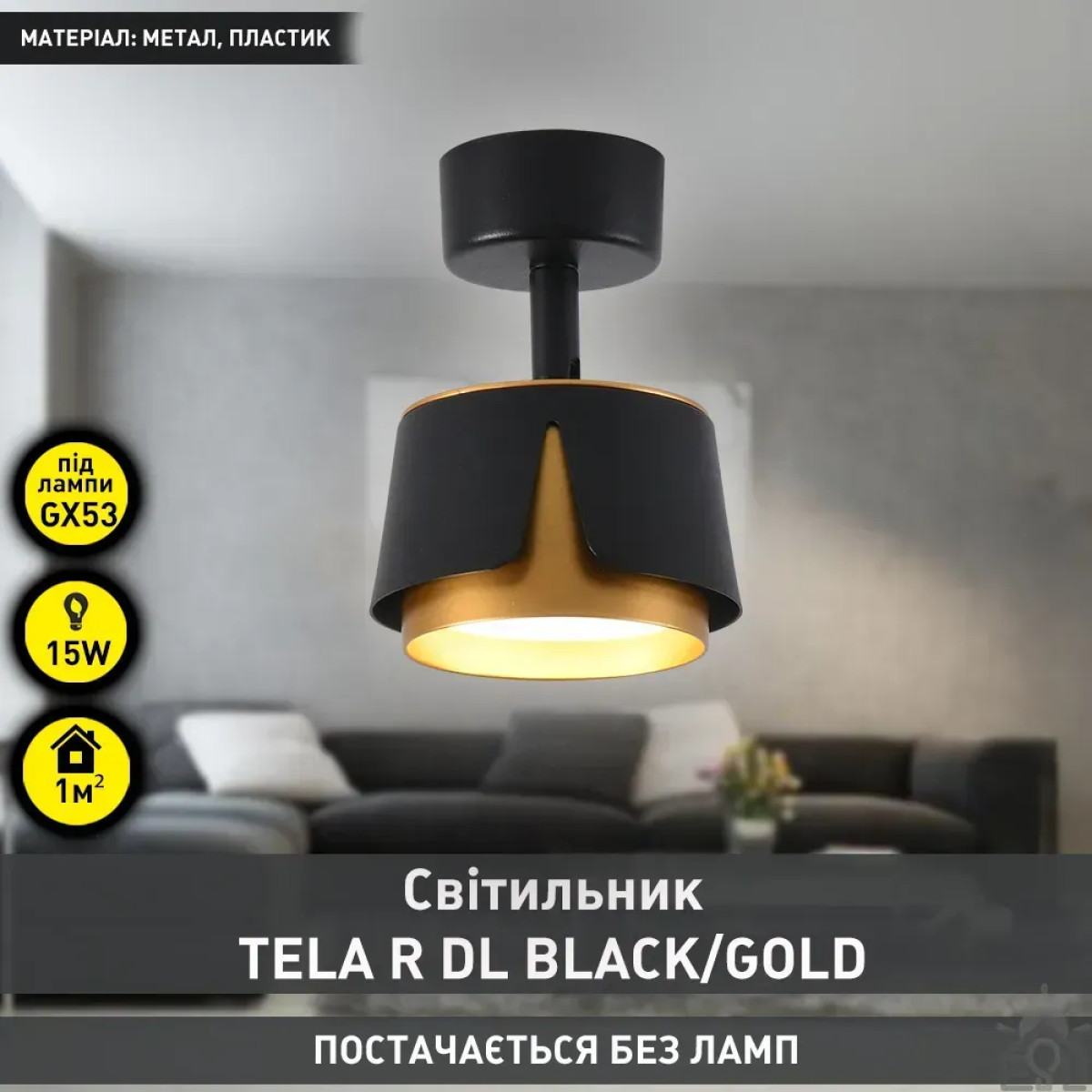 Світильник TELA R DL 100x135 мм Чорно-золотий для лампи GX53 10528 ESLLSE