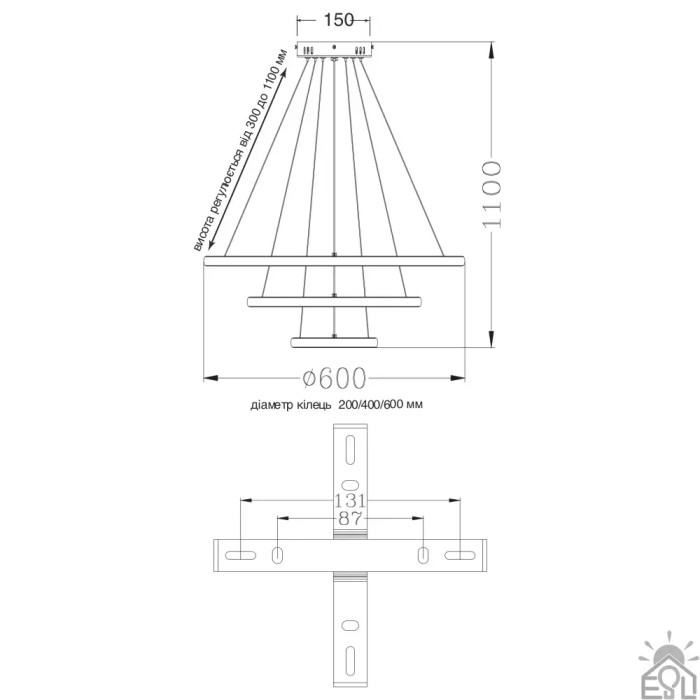 Світлодіодна люстра підвісна LATTE 75 Вт 600x1100 мм Керується вимикачем (без пульта) 10413 ESLLSE