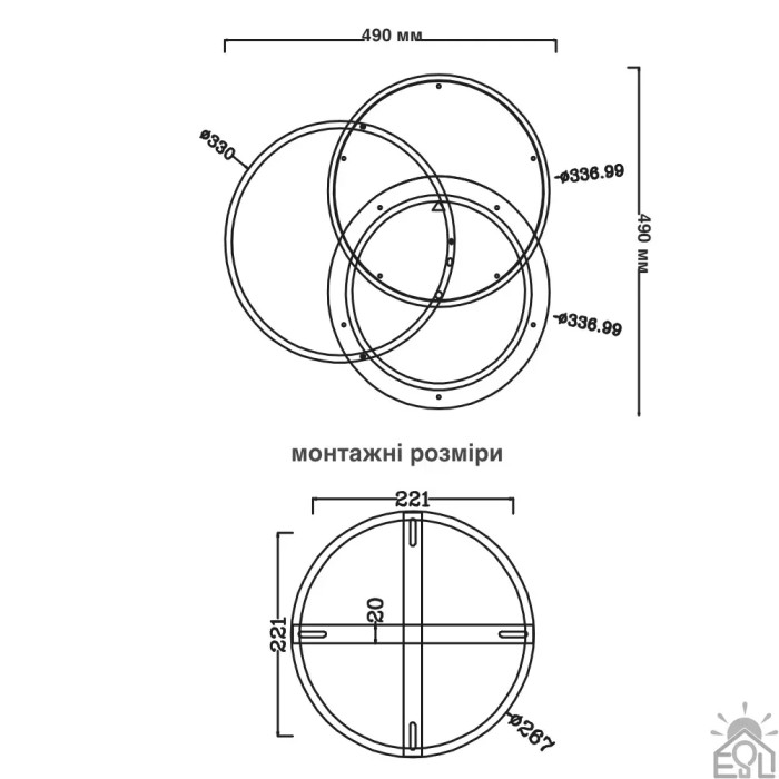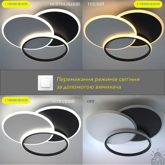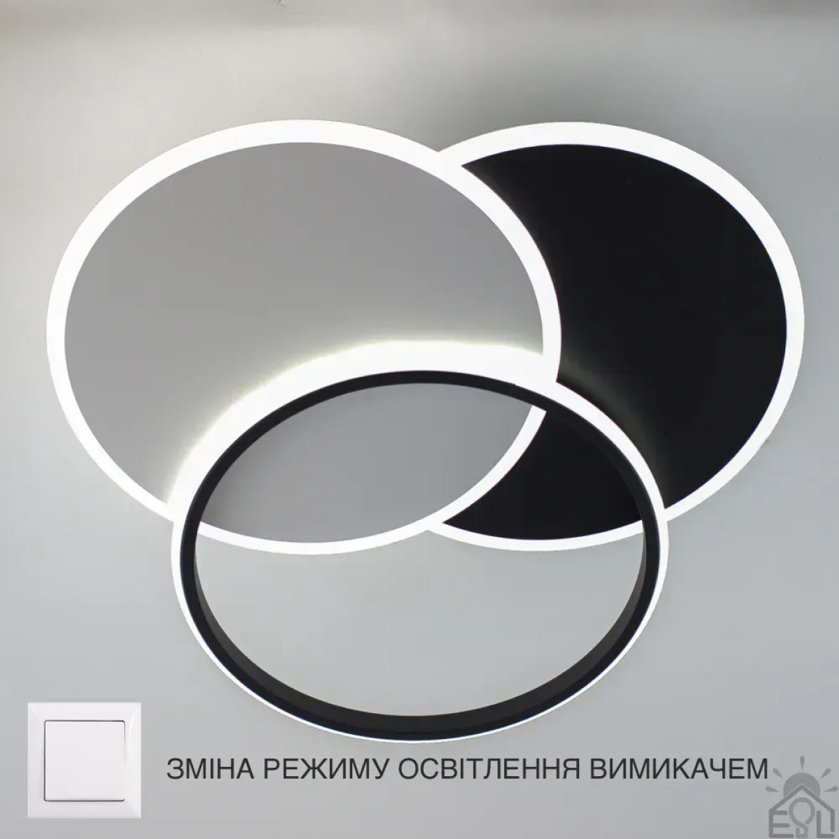 Світлодіодна люстра VEGA TRIPLE 3R 70 Вт 490х490х60 мм Чорно-Біла Керується вимикачем (без пульта) 10402 ESLLSE